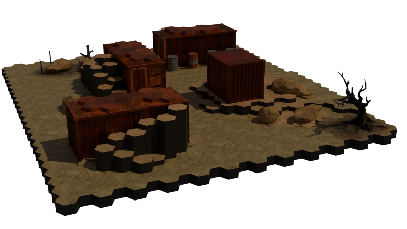across the baord whilst opportunity to scale the containers and stand miniatures upon them provide overwatch options to the player.